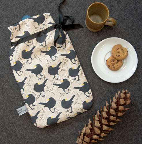 Blackbird Print Hot Water Bottle